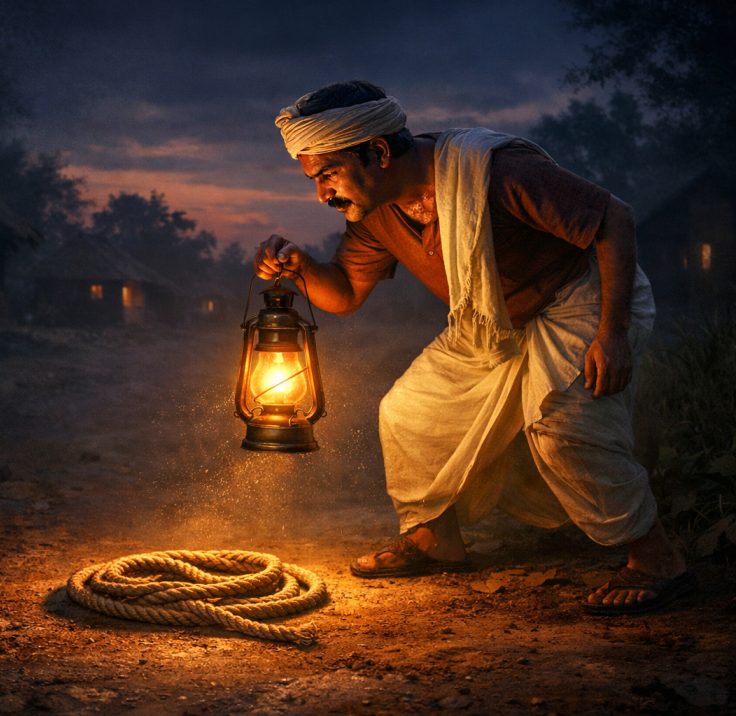 বাংলাস্ফিয়ার: ভারতের আধ্যাত্মিক দর্শন অদ্বৈত বেদান্ত-এর শিক্ষায় একটি বহুল প্রচলিত উপকথা রয়েছে, যা মানুষের দুঃখ, ভয় এবং বাস্তবতা সম্পর্কে ভুল ধারণার প্রকৃতি ব্যাখ্যা করতে ব্যবহৃত হয়। এই গল্পটি বহু শতাব্দী ধরে আধ্যাত্মিক শিক্ষকরা তাদের শিষ্যদের বোঝানোর জন্য ব্যবহার করেছেন, বিশেষ করে এই ধারণা তুলে ধরতে যে মানুষের অনেক সমস্যাই বাস্তবের চেয়ে ভুল উপলব্ধির ফল। সাপ নাকি দড়ি? উপকথা অনুযায়ী, এক গ্রামবাসী সন্ধ্যার সময় বাড়ি ফিরছিলেন। হঠাৎ তিনি রাস্তার মাঝখানে একটি সাপ দেখতে পান এবং সঙ্গে সঙ্গে আতঙ্কিত হয়ে পিছিয়ে যান। তিনি ভাবতে শুরু করেন—সাপটি বিষাক্ত হতে পারে। তিনি দ্বিধায় পড়েন: সাপটিকে মারবেন, ভয় দেখিয়ে তাড়াবেন, নাকি দৌড়ে পাশ কাটিয়ে যাবেন? ভয়ে স্থির হয়ে তিনি রাস্তার মাঝেই দাঁড়িয়ে থাকেন, সমস্যার সমাধান নিয়ে ভাবতে থাকেন, কিন্তু এগোতে পারেন না। পরবর্তীতে, তিনি সাহস সঞ্চয় করে কাছে যান এবং তার প্রদীপের আলো ফেলেন। তখন তিনি আবিষ্কার করেন, যেটিকে তিনি সাপ ভেবেছিলেন, সেটি আসলে একটি দড়ি—সম্ভবত কোনো পথিক ফেলে গিয়েছিল। ভুল ধারণা কীভাবে ভয় সৃষ্টি করে এই উপকথাটি একটি মৌলিক ধারণা তুলে ধরে: মানুষের অনেক ভয় এবং দুঃখ বাস্তবতার উপর ভিত্তি করে নয়, বরং ভুল ব্যাখ্যা এবং অজ্ঞতার উপর নির্ভর করে। বিশেষজ্ঞরা বলেন, মানুষ প্রায়ই কোনো পরিস্থিতি পুরোপুরি বোঝার আগে সেটিকে সমস্যা হিসেবে ধরে নিয়ে সমাধান খোঁজার চেষ্টা করে। কিন্তু যদি সমস্যার মূল ধারণাটিই ভুল হয়, তাহলে তার সমাধানও অর্থহীন হয়ে যায়। এই প্রসঙ্গে পদার্থবিজ্ঞানী আলবার্ট আইনস্টাইন একবার বলেছিলেন, মানুষ সেই একই চিন্তাভাবনা দিয়ে সমস্যার সমাধান করতে পারে না, যেটি দিয়ে সমস্যাটি তৈরি হয়েছে। উপকথার ক্ষেত্রে, গ্রামবাসী যতই সমাধান ভাবুক না কেন, তিনি সমস্যার সমাধান করতে পারতেন না, কারণ সমস্যাটি আসলে ছিলই না। সাপটি বাস্তবে ছিল না—এটি ছিল কেবল একটি ভুল উপলব্ধি। সচেতনতা: সমস্যার প্রকৃত সমাধান এই গল্পে প্রদীপের আলো একটি প্রতীক—এটি জ্ঞান এবং সচেতনতার প্রতিনিধিত্ব করে। অন্যদিকে, অন্ধকার প্রতীক অজ্ঞতার। যখন আলো ফেলা হয়, তখন বাস্তবতা পরিষ্কার হয়ে ওঠে। দড়ি আর সাপ বলে মনে হয় না। বাস্তবতা বদলায়নি, বদলেছে কেবল উপলব্ধি। আধ্যাত্মিক অনুশীলন যেমন ধ্যান এবং mindfulness-এর মূল উদ্দেশ্যও এই—মানুষের চিন্তার ভুল প্রবণতা কমানো এবং বাস্তবতা পরিষ্কারভাবে উপলব্ধি করা। আধুনিক প্রেক্ষাপটে উপকথার প্রাসঙ্গিকতা মনোবিজ্ঞানীরা বলেন, মানুষ প্রায়ই ভবিষ্যৎ নিয়ে উদ্বেগ, ভুল অনুমান, এবং অসম্পূর্ণ তথ্যের ভিত্তিতে মানসিক চাপ তৈরি করে। এই ধরনের চিন্তাভাবনা বাস্তব সমস্যার চেয়ে বেশি কষ্টের কারণ হতে পারে। উপকথ