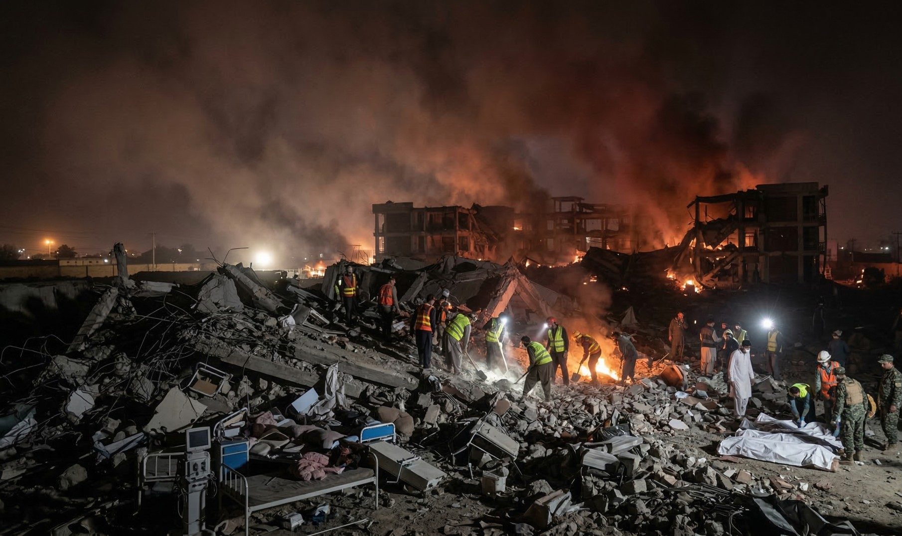 ঘটনাটি ঘটেছে সোমবার গভীর রাতে। লক্ষ্যবস্তু ছিল একটি বিশাল পুনর্বাসন কেন্দ্র। প্রায় ২০০০ শয্যার এই প্রতিষ্ঠানটি ছিল মাদকাসক্তদের পুনরুদ্ধারের জন্য একটি গুরুত্বপূর্ণ অবকাঠামো। তালিবান প্রশাসনের বক্তব্য অনুযায়ী, এই কেন্দ্রটিতে মূলত অসহায়, চিকিৎসাধীন মানুষজনই ছিলেন যাদের সঙ্গে কোনো সামরিক কর্মকাণ্ডের সম্পর্ক ছিল না। বিস্ফোরণের অভিঘাতে ভবনের বড় অংশ ভেঙে পড়ে, আগুন দ্রুত ছড়িয়ে পড়ে এবং মুহূর্তের মধ্যে জায়গাটি রূপ নেয় এক দগ্ধ মৃত্যুকূপে।