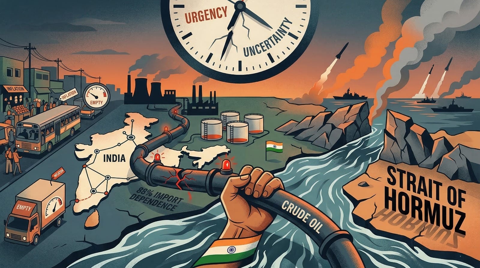 ভারত আজ তার মোট অপরিশোধিত তেলের প্রায় ৮৮ শতাংশই আমদানি করে। এই বিপুল আমদানি নির্ভরতা কেবল পরিসংখ্যান নয়, এটি ভারতের অর্থনৈতিক কাঠামোর একটি মৌলিক দুর্বলতা। বিশেষ করে যখন এই আমদানির একটি বড় অংশ পশ্চিম এশিয়া থেকে আসে এবং তার সিংহভাগই হরমুজ প্রণালী পেরিয়ে ভারতে পৌঁছায়, তখন সেই সরবরাহপথের সামান্য বিঘ্নও এক বিস্ফোরক পরিস্থিতির জন্ম দিতে পারে। বর্তমানে প্রতিদিন প্রায় ২৫ লক্ষ ব্যারেল তেল এই প্রণালী দিয়ে ভারতে আসে যা দেশের জ্বালানি চাহিদার একটি গুরুত্বপূর্ণ অংশ পূরণ করে।