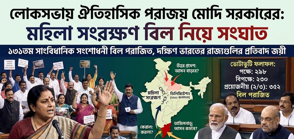 এই পরাজয় শুধু একটি বিলের ব্যর্থতা নয়। এটি স্পষ্ট করে দিল, লিঙ্গ সমতার রাজনীতি, আঞ্চলিক স্বার্থের টানাপোড়েন, জনগণনা ও ডিলিমিটেশনের ক্ষমতার হিসাব এবং কেন্দ্র-রাজ্য সম্পর্কের জটিল সমীকরণ একসাথে মিলিত হলে একটি সর্বসম্মত প্রয়োজনীয় সংস্কারও আটকে যেতে পারে।