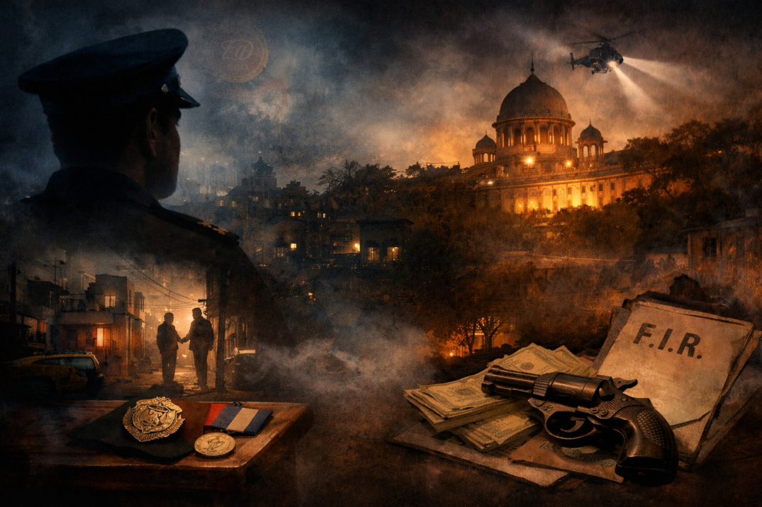 ১ এপ্রিলের প্রথম দফা অভিযানে ইডি সোনা পাপ্পুর ফার্ন রোডের বাসভবন থেকে ‘Made in USA’ লেখা একটি রিভলভার উদ্ধার করে। আমেরিকায় তৈরি অস্ত্র, বালিগঞ্জের ফ্ল্যাটে — এই ছবিটা শুধু একটি অপরাধের নয়, এটা একটা পরিবেশের, একটা কাঠামোর ছবি, যেখানে আইন এবং আইনের বাইরে এতটাই মিলে গেছে যে আলাদা করা কঠিন। তারপর ১৯ এপ্রিল, ভোরের আলো ফোটার আগেই, ইডি অফিসাররা সকাল সাতটায় বালিগঞ্জের ফার্ন রোডে ডিসিপির বাসভবনে পৌঁছান। শান্তনু সিনহা বিশ্বাস সেখানে ছিলেন না।
